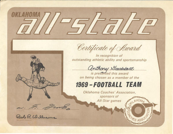 Thurs., Mar. 20, 1969 25. By Henry Hawkins Two diseases have hit the 1969 edition of the All-City basketball team picked by The Oklahoma City Times. It's senioritis and Mid-Stateitis. Of the 15 spots on the team, 12 are taken up by seniors and 11 by performers who competed in the Mid-State. The only underclassmen are Moore's Dave Fisher who landed a first team spot, Ron Raunborg of Northwest, a junior, who gained the second team and Douglass' Stanley Bur din e, a sophomore, who was honored on the pending upon who your favorite ball player or team is. Lending plenty of fuel to that argument is 6-10 Steve Mitchell of Northwest, who fueled the Knights to the Mid-State conference crown this year after Douglass had won the loop three times, and a state championship last season. And then there's Clay Hostex of U. S. Grant, who school The margin separating Rich and Mitchell, for this years honors, were very slim. Most college coaches would do head-flips if ei- ther one decided on enrolling at his school. Mitchell, because of intimidating height and agility under the goal and Rich, known to score from anywhere on the court. Care 1-, finals' Mitchell's sophomore year, won the state Class AAA crown his junior term and this time Tul- sa Hale ousted the Knights in the first round of the state tourney. Douglass was thumped in the state finals of the Class AAA tourney w'' Rich was a lost -h.- first round of the state meet. Rich and Mitchell both were first team selections a year ago — Hoster was on the honorable mention list and Albert Chandler of Douglass made the third team for the second year. Capitol Hill was picked to finish seventh in the 10-team Mid-State, but Overton regrouped his forces behind returning starters Dukes and James Lackey, named to the second team and part-timer Anth- Gaedart and guide Redskins to th' the Mid-St1 tourrr Claudell Overton Marvin Rich Allen Dukes Coach of the Year Douglass Capitol Hill THE SUNDAY OKLAHOMAN Section B December 22, 1968 3 • LL SH EA ALL By Lynn Garnand James Williams of Clinton, upholding the Red Tornado tradition, is the 1.968 All-State football team's back of the year, while veratile John Carter of Northwest is tapped for lineman honors. Williams, the second straight Tornado to earn best back laurels, looked like a man among boys as he led Clinton to its second straight Class A state championship and third in four years. Carter, a 245-pounder Hornets' Lacy Coach of Year Knights' Carter Top Lineman who did everything except drive the Knights' bus, was an instrumental factor in Northwest's drive to a perfect season and the Mid-State championship. The extraordinary gridder played almost every position on both the offensive and defensive teams. Ed Lacy Tulsa Washington Coach of the year is Ed Lacy of Tulsa Washington, who guided his Hornets to their second straight Class AAA state championship when no one except himself, his assistant coaches and his team thought they could do it. Lacy took over the reins at Washington three years ago after serving several years there as assistant coach. His teams have a combined record of 28-2-1 with seasons of 7-1-1, 11-0 and 10-1. The Hornets' lone loss came this season in a 7-6 defeat by Wichita Falls Rider. Washington, scoring late in the fourth period, originally kicked the extra point in that game to tie the score but when Rider was penalized, the Hornets went for the victory and failed. Joining Lacy on the All-State team are two of his proteges — Thomas Zackery, who led the Hornets in rushing and scoring, and Don Senter, the anchor of Washington's offensive and defensive lines. Williams succeeds Clinton's Roy Bell as back of Into paydirt from every place an the field, including a 99-yard run against Elk City. Just as effective on defense from his linebacking position, Williams was a big reason why the Tornadoes allowed only 43 points in their 13 victories. Starting the season at offensive tackle, Carter was switched to halfback when one of his teammates was injured. During the course of the season, he played everywhere along the line and at the end of the cam- the year as he picked up where Bell left off. The 200-pound bruiser sparked Clinton to another perfect, 13-0 season to extend the Tornadoes' winning streak to 26 games. He r u shed for 2,098 yards this season and scored 172 points, crossing '68 All-State North Player, School Ht. Wt. E — Steve Fry, Blackwell 6-3 198 E — Roger Hilton, Beaver 6-3 200 E-HB — Mike McLaughlin, Cherokee 6 5 205 E — Allen Totten, Chandler , 6-3 185 T — Neil Acker, Okmulgee 6-2 210 T — Ernie Harris, Tulsa Central 6-1 245 T — John Markert, Stroud 6-2 230 T-FB — Ron Revard, Tulsa Kelley 6-2 210 T — Hugh Vertrees, Sperry 6-0 215 G — Duke Atterberry, Pawhuska 6-0 195 G — Mike Eddy, Tulsa Hale 6-0 215 G — Bill McComas, Guthrie -6-0 205 C — Don Senter, Tulsa Washington 5-E! 188 QB — Larry Roach, Watonga 5-11 170 QB-HB — Rod Warner, Stillwater 5-11 165 QB — Steve Williams, Collinsville 5-9 160 HB — Dick Coates, Ponca City 6-1 173 HB — David Gleason, Choctaw 6-1 185 HB — Robert Walton, Dewey 5-7 167 HB — Gordon Williams, Enid ... 5-10 170 HB — Thomas Zackery, Tulsa Washington 5-9 172 FB — Paul Hudson, Hominy 6-2 210 FB — Bill Orendorff, Sallisaw 6-1 210 FB — Mike Spicer, Grove 5-10 185 FB Tommy Woods, Tulsa Hale 5-10 185 South E—John Allen, Velma-Alma paign was seeing full-time duty at flanker back. Defensively, he was primarily a tackle but also saw duty at nose guard and linebacker. Carter was also a strong candidate for back of the year honors as he lcd the Knights in scoring and was virtually unstoppable when short yardage was needed. Unbelievably agile for his size, the lineman of year owns a fine pair of hands which he put to good use in pass receiving. With t h e exception of eight-man champion Jet, every state title-winning team is represented on the All-State team. Zackery and Senter are the Hornets' representatives while McAl